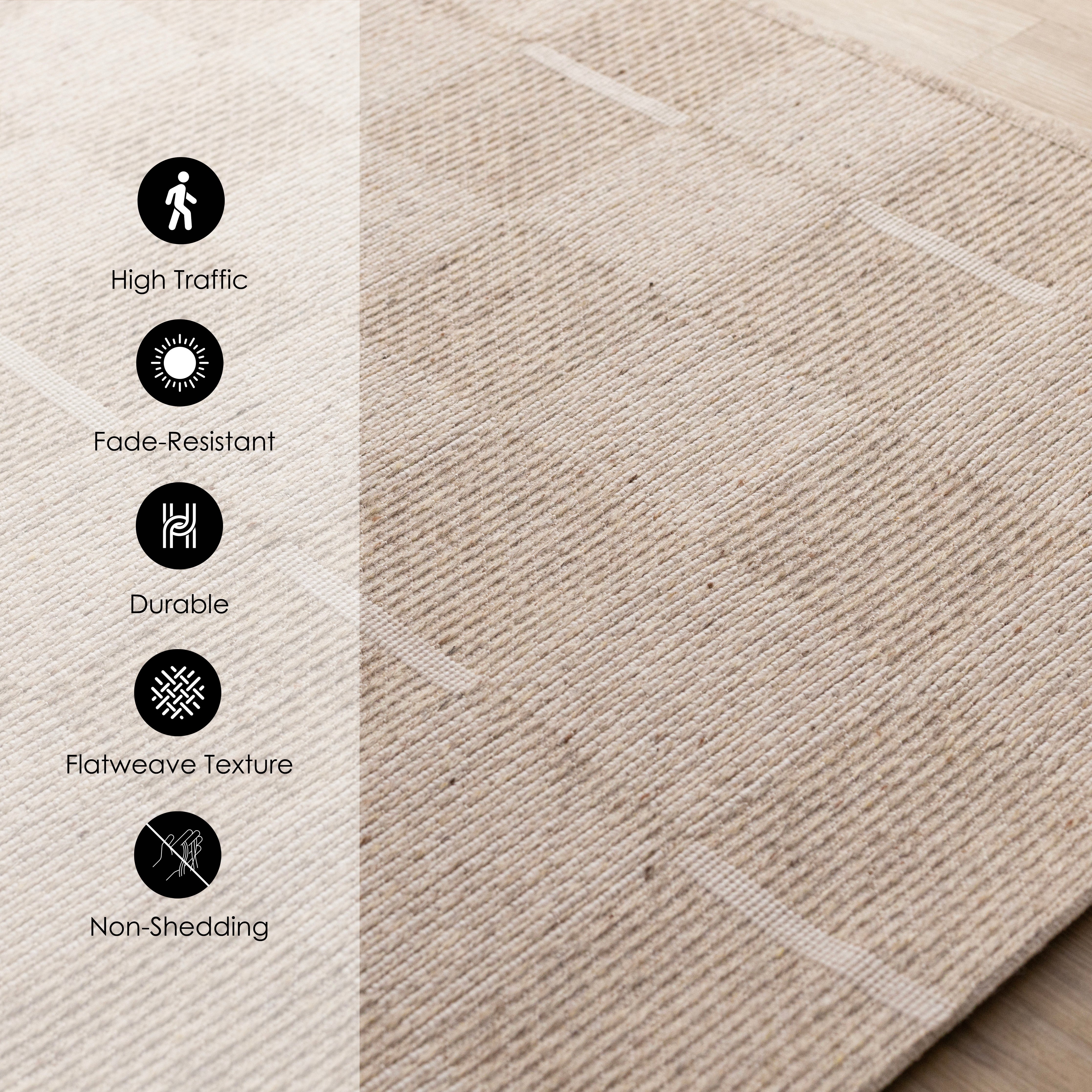 Create an AccountFeaturing a soft flatweave chenille texture, these rugs are made from a blend of wool, polyester and polypropylene. These rugs are trendy and durable with warm neutral colours and a low profile, perfect for Boho, Scandinavian or Farmhouse designs.