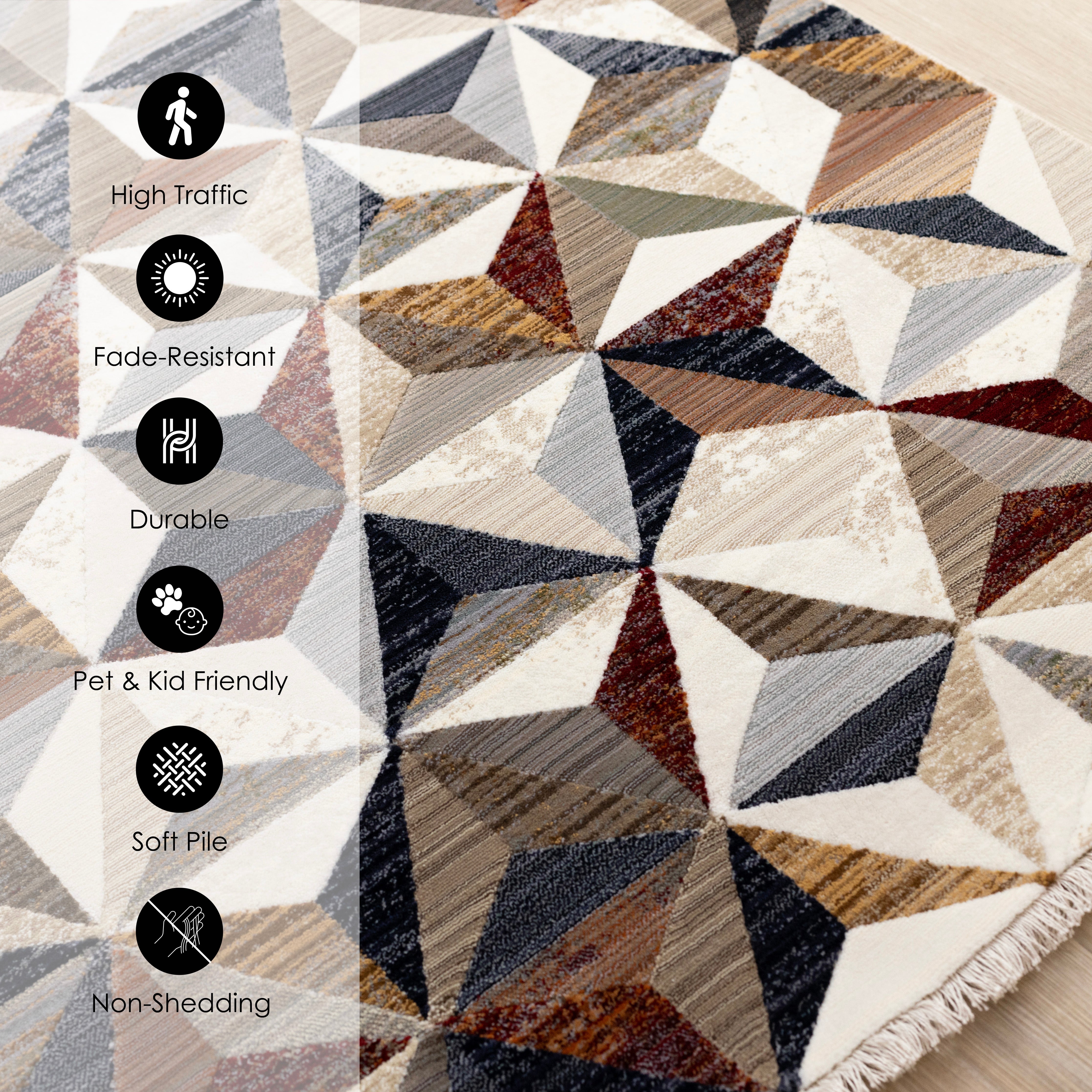 The combination of dense pile, drop stitch and double pointing give the Samira collection a complex and inviting texture. The intricate weaving and authentic tassels enhance the traditional designs. Reds, Blues, Browns and Greys are expertly combined to give Samira a warm and welcoming aesthetic.